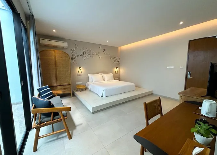 Die Biloba Villas And Suites Canggu liegt lediglich 5 Gehminuten vom Billie's entfernt und bietet Gästen einen Jacuzzi zum Entspannen. Gelegen im Viertel Berawa von Canggu, bietet die Villa in Canggu Geschäftsreisenden einen Arbeitstisch.